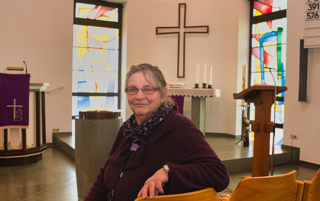 Die sichtbaren Handgriffe sind dabei nur die Oberfläche. Was Küsterinnen wirklich leisten, erschließt sich erst beim Zuhören. Seit Corona füllt die Gemeinde keine gemeinsamen Kelche mehr, sondern 30 Einzelportionen Abendmahlwein. Das Ritual zerlegt in 30 kleine Gläser, trotzdem vollzogen, trotzdem gültig. Die Hostien werden gezählt. Die Kerzenhalter der Auferstehungskirche sind so gebaut, dass die Kerzen nie von alleine geradestehen. Vor jedem Gottesdienst braucht es eine Justierung, einen kleinen Dreh, einen halben Zentimeter Korrektur. Elke Zimer kennt diesen Griff auswendig. Heiligabend, der dichteste Dienst des Jahres, verlangt noch mehr: Bänke voll, Stimmung aufgeladen. Manchmal kippt jemand um. Selten, aber es kommt vor. Dann braucht es jemanden, der ruhig bleibt und handelt. Das war sie in all den Jahren. Doch mittlerweile ist ihr die körperliche Arbeit zu anstrengend geworden. Schließlich gehört auch das Putzen der vielen Räume zu ihren Aufgaben.