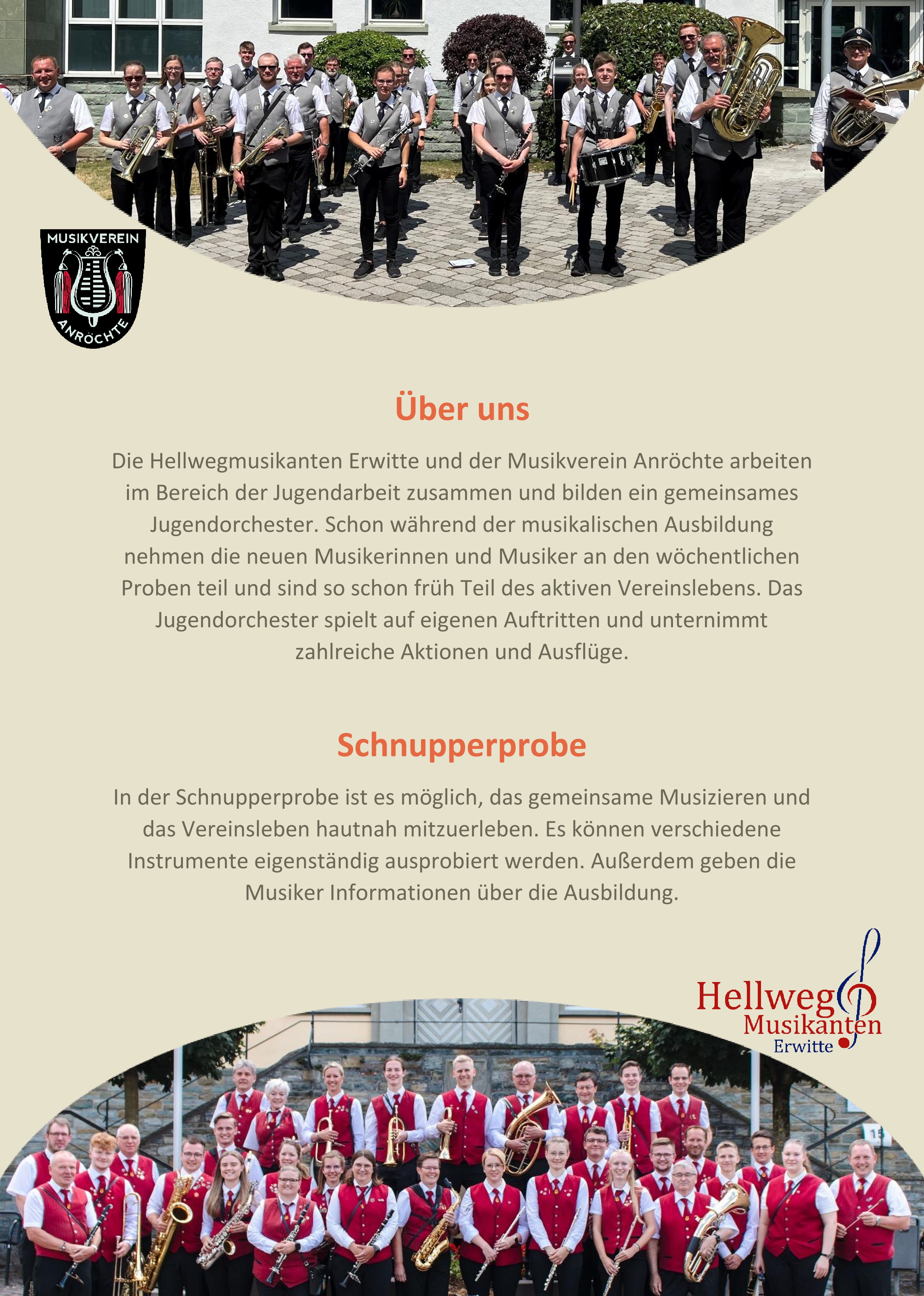 Die Hellwegmusikanten Erwitte und der Musikverein Anröchte arbeiten im Bereich der Jugendarbeit zusammen und bilden ein gemeinsames Jugendorchester. Schon während der musikalischen Ausbildung nehmen die neuen Musikerinnen und Musiker an den wöchentlichen Proben teil und sind so schon früh Teil des aktiven Vereinslebens. Das Jugendorchester spielt auf eigenen Auftritten und unternimmt zahlreiche Aktionen und Ausflüge.