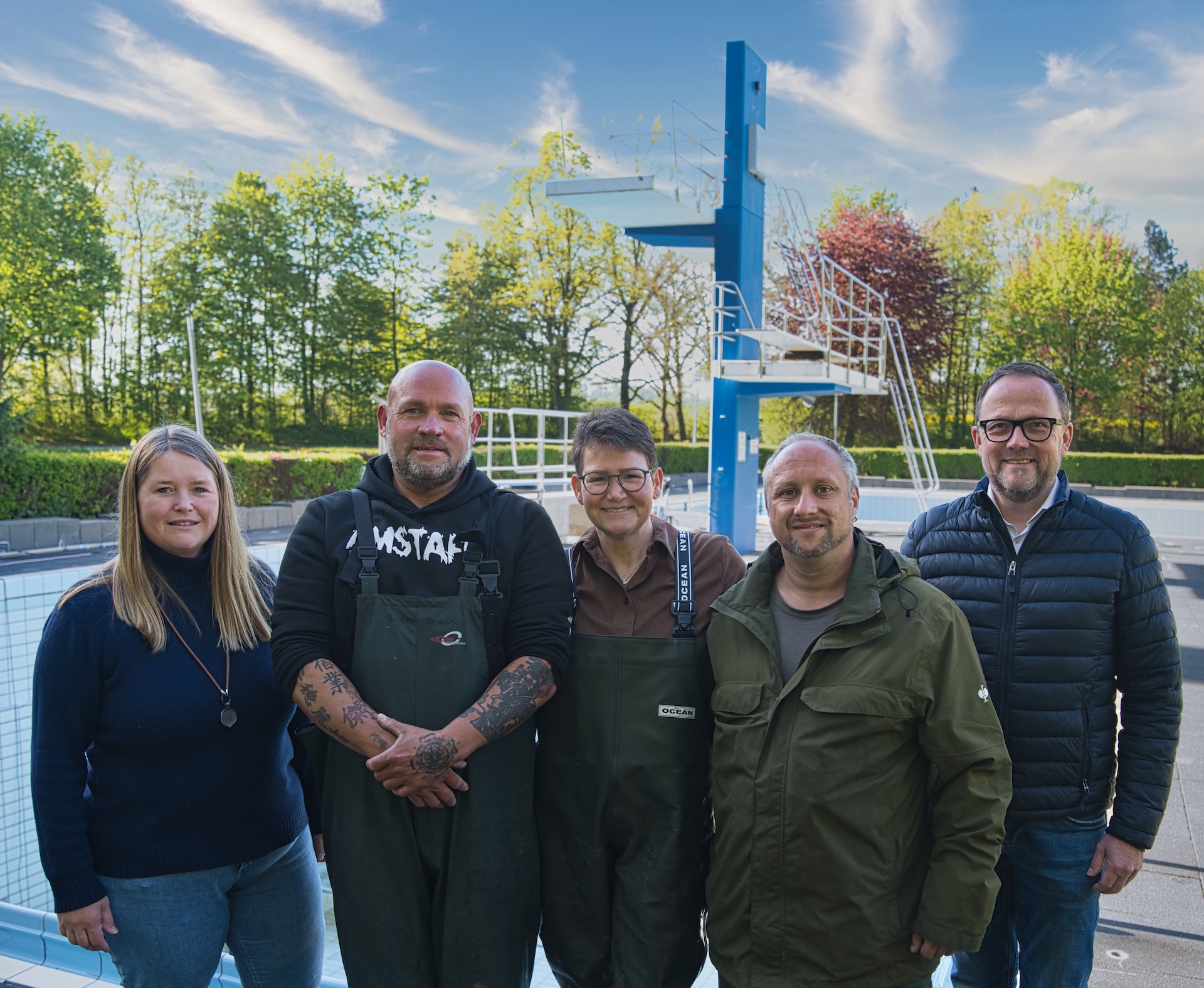 In den vergangenen Wochen liefen die Vorbereitungen auf Hochtouren. Eine spezialisierte Fachfirma hat die Fliesen ausgebessert und die gesamte Anlage für den Saisonbetrieb fit gemacht. Was von außen nach Routine aussieht, steckt voller handwerklicher Sorgfalt. Ein gepflegtes Freibad entsteht nicht von selbst – es ist das Ergebnis von Arbeit, die lange vor dem ersten Badegast beginnt. „Wenn die Tore aufgehen und die ersten ins Wasser springen, weiß ich genau, wofür sich das alles lohnt“, sagt Lars Kemke. Gemeinsam mit seinem Team, das aus Marika Grude und den Saisonkräften für die Grünpflege, Dandy Jungnickel sowie Andreas Geis, und den in der Aufsicht unterstützenden DLRG-Kräften besteht, hat er in den letzten Tagen vor allem die Becken intensiv gereinigt.